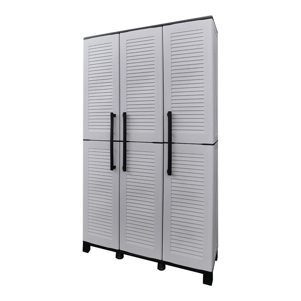 Armario alto con estantes y portaescobas línea family de polipropileno gris claro, 102 x 37 x 169 cm