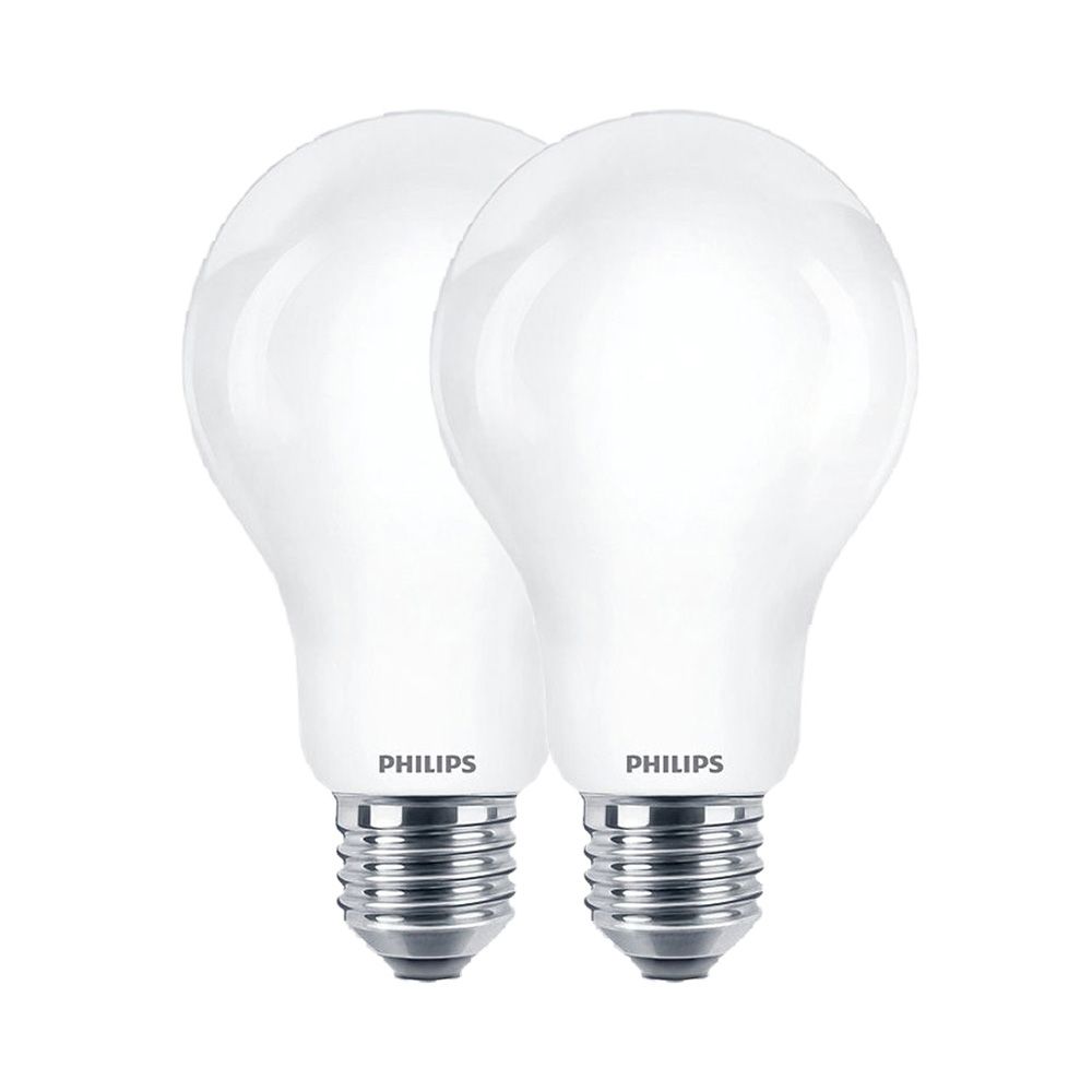Bombilla estándar led e27 10,5 w (equiv. 100 w) 1521 lm 2700 k luz cálida, cri 80, clasificación energética d, vida útil: 15.000 h, 220 – 240 v ac 50/60 hz. flujo luminoso 360° dimensiones: ø6 x 10,4 cm. 2 uds