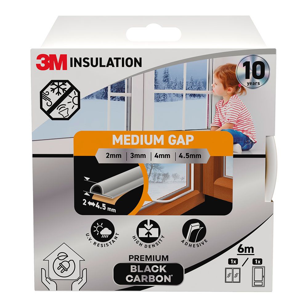 Burlete de aislamiento premium para huecos medianos de 2 – 4,5 mm, blanco, 6 m