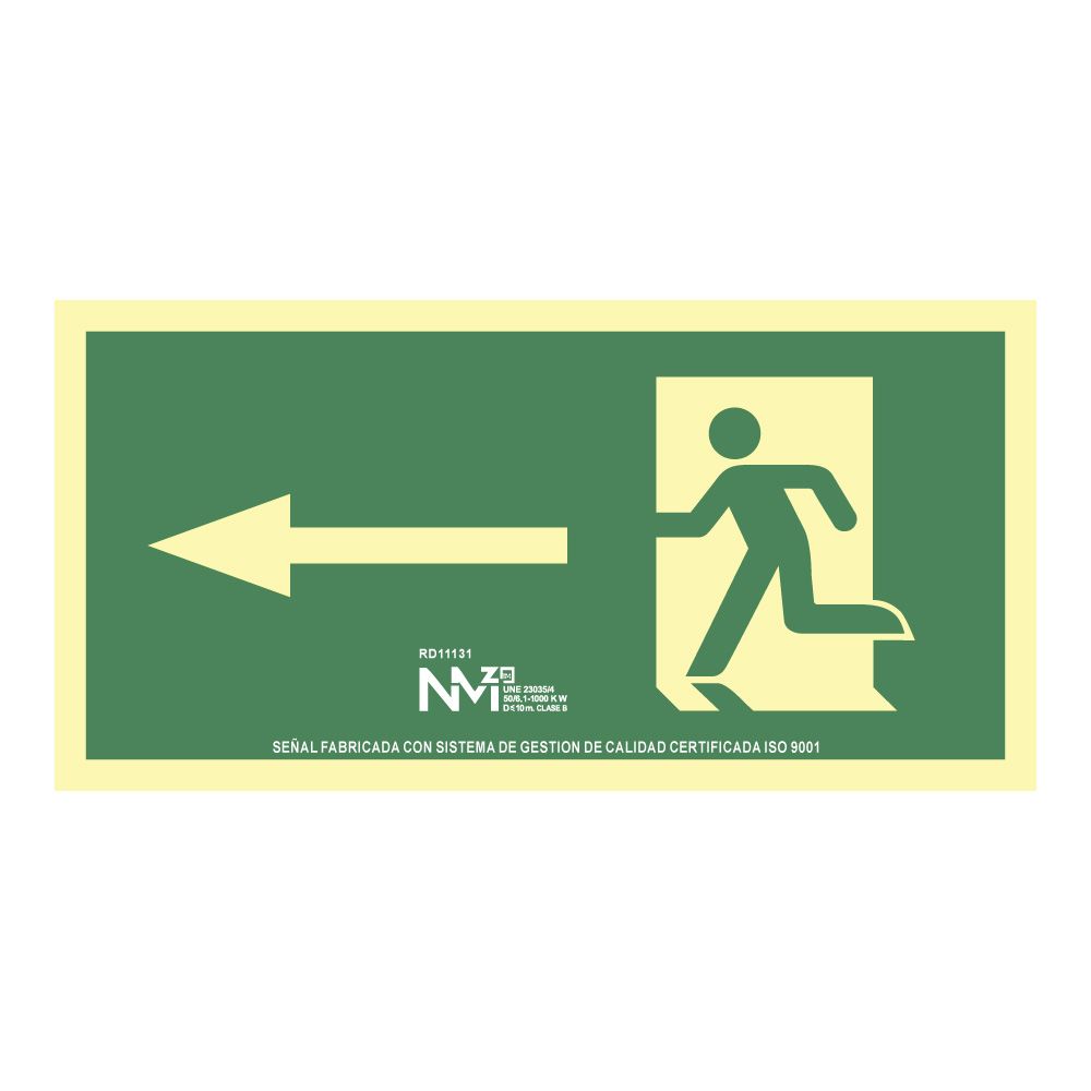 Cartel de evacuación flecha izquierda (pvc 1mm) clase a 32x16cm normaluz
