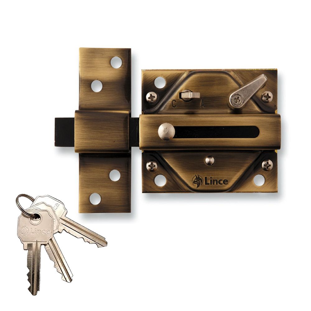 Cerrojo tradicional 2930 acabado bronce ingles 92930bi lince cerrojo de sobreponer 2930. los característicos e inconfundibles cerrojos lince, siempre han sido unos referentes en la seguridad adicional para proteger todo aquello que más apreciamos. los cerrojos de la serie 2930 son el complemento de cierre ideal para adaptarse a todo tipo de puertas ofreciendo la máxima protección para viviendas, comercios, oficinas, colegios, edificios sociales. el cierre del cerrojo se realiza mediante una palanca deslizante de 4 vueltas de giro, accionables con la llave desde el exterior y, por el interior, el cierre se realiza de manera rápida y segura a través del tirador. el cerrojo viene equipado con un tubo de defensa antigiro y con el dispositivo de bloqueo apertura a/c (abierto / cerrado), el cual nos permitirá desde el interior condenar el acceso con llave. se suministra con 3 llaves tipo serreta en acero níquel. acabados: latonado, cromo brillo, cobre viejo o bronce inglés. medidas envase: 10x16x6cm. peso: 1,110kg.
