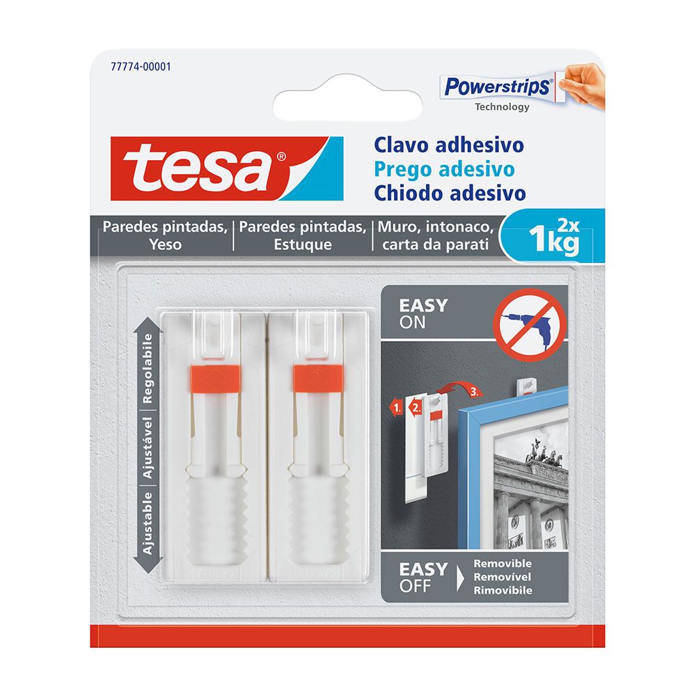 Clavo adhesivo hasta 1kg pared pintada 77774 tesa