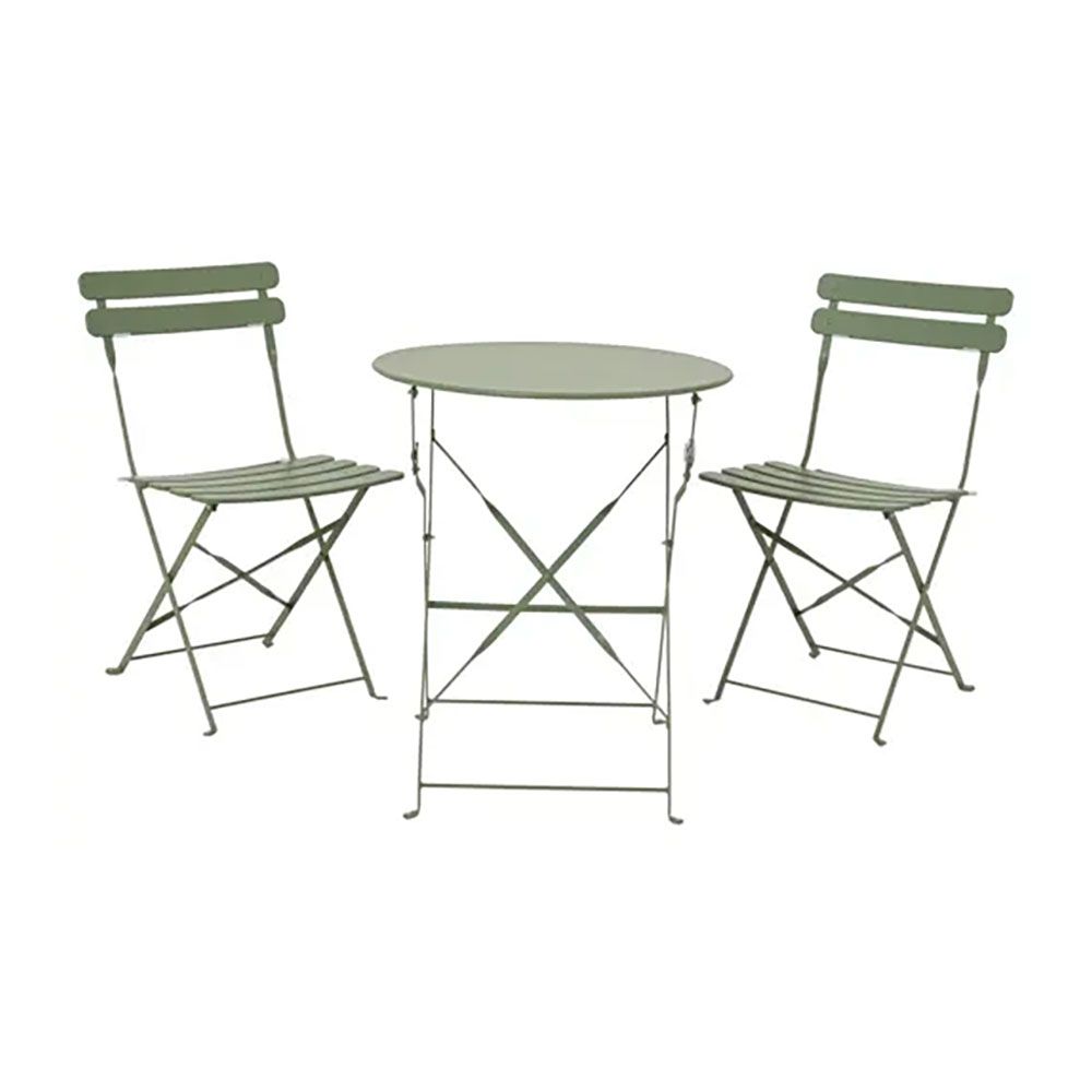 Conjunto de mesa y 2 sillas helsingborg, plegables, de acero, verde