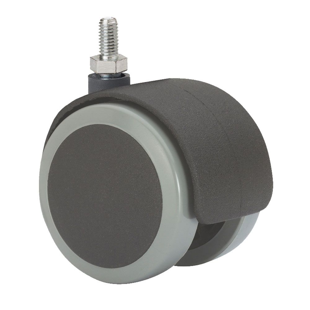 Rueda giratoria espiga roscada y eje liso, color negro / gris, carga máx. 50 kg, 10 x 15 mm, ø 5 cm