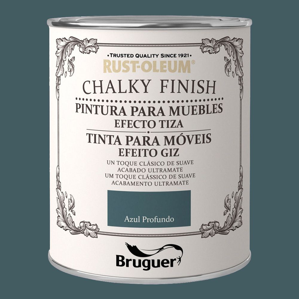 Rust-oleum chalky finish muebles azul profundo 750 ml. pintura a la tiza para un acabado mate vintage. pintura al agua, con minimo olor, acabado ultramate, efecto empolvado, gran poder cubriente en una sola capa
