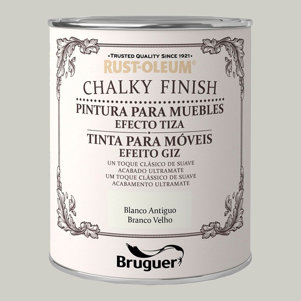 Rust-oleum chalky finish muebles blanco antiguo 125 ml. pintura a la tiza para un acabado mate vintage. pintura al agua, con minimo olor, acabado ultramate, efecto empolvado, gran poder cubriente en una sola capa.
